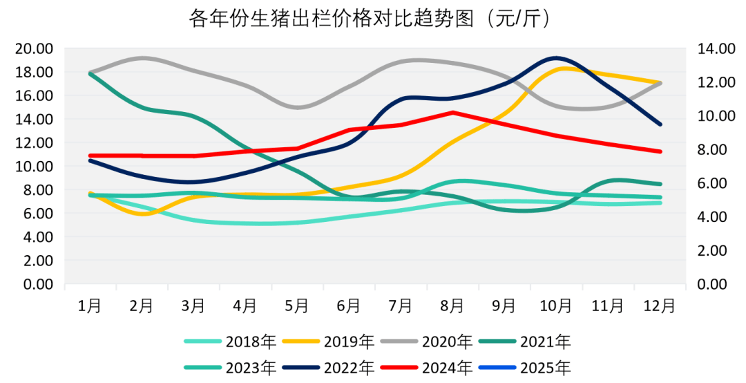 2025年1月国内生猪出栏价达7。85元/斤,月度环比下跌-0。44元/斤,市场供应偏强的态势持续存正在,生猪市场行情呈现出迟缓下跌的走势。虽有大量补货需求,但供强需缓场合排场延续,生猪价钱下跌。2025年1月生猪定点屠宰企业出栏价均价为17。57元/公斤,同比涨跌幅+14。37%,环比涨跌幅+0。16%。