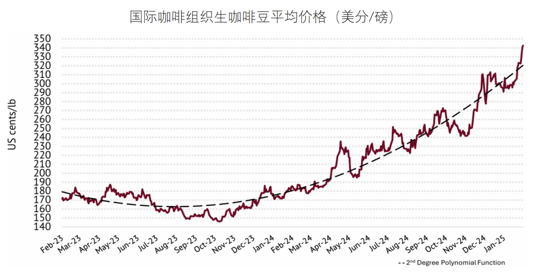 2025年1月,国际生咖啡豆均价环比继续上升。国际咖啡组织数据显示,1月国际咖啡豆分析价(I-CIP)平均310。12美分/磅,环比上升3。5%,价钱正在294。51美分/磅~342。53美分/磅之间波动。I-CIP正在1月继续立异高,达到自1977年4月314。96美分/磅(表面价钱)以来的最高月均值。